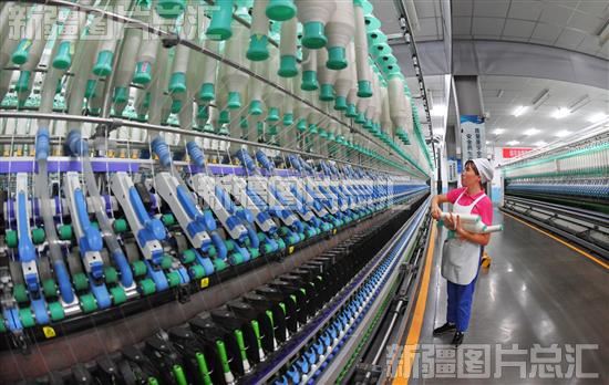 2023年11月10日,工人在位于克孜勒苏柯尔克孜自治州江苏产业园的克州润华纺织科技有限公司生产车间作业。该公司是一家集纺纱、织布及高端纺织品研发生产于一体的大型纺织企业,公司整体规模为年产纱线30万锭。