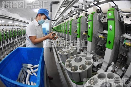 2023年11月10日,工人在位于克孜勒苏柯尔克孜自治州江苏产业园的克州润华纺织科技有限公司生产车间作业。该公司是一家集纺纱、织布及高端纺织品研发生产于一体的大型纺织企业,公司整体规模为年产纱线30万锭。
