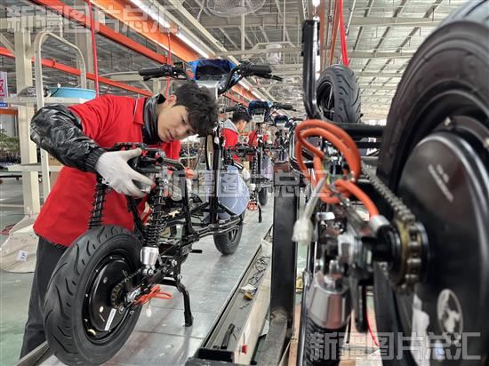 2023年11月10日,工人在位于克孜勒苏柯尔克孜自治州江苏产业园的飞凤车业(克州)有限公司生产车间组装电动摩托车。该公司是一家专业生产、销售、出口电动摩托车、电动自行车和电动三轮车的新能源企业。公司于今年8月开始试营业,预计年均产2-3万辆各式电动车。