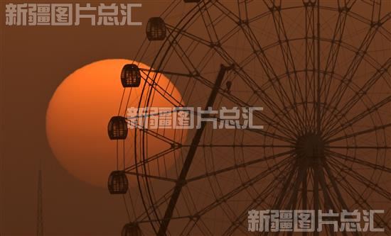 清晨,一轮红日从远处的岚气中露出“面孔”,圆圆的太阳由深到浅,柔和自然,位于库尔勒龙山公园里,红日与一座摩天轮相映成趣。