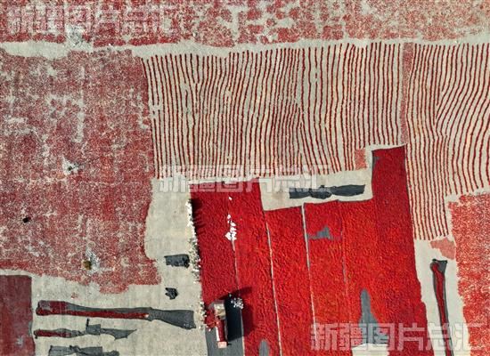 眼下,焉耆回族自治县种植的12.88万亩辣椒进入适合的晾晒关键期,广大农户抢抓有利天气,将已采摘好的辣椒进行晾晒,晒场上一派忙碌景象。