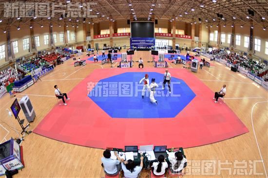 当日,自治区第十四届运动会比赛项目跆拳道比赛在库尔勒市开赛,来自全疆的14支代表队600余名运动员参加为期3天的比赛。