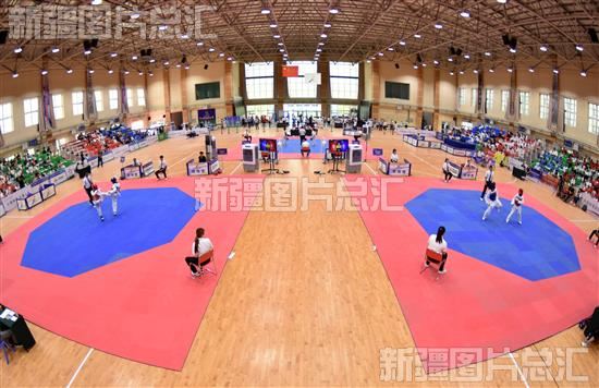 当日,自治区第十四届运动会比赛项目跆拳道比赛在库尔勒市开赛,来自全疆的14支代表队600余名运动员参加为期3天的比赛。