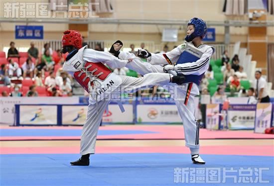 当日,自治区第十四届运动会比赛项目跆拳道比赛在库尔勒市开赛,来自全疆的14支代表队600余名运动员参加为期3天的比赛。