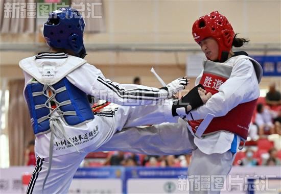 当日,自治区第十四届运动会比赛项目跆拳道比赛在库尔勒市开赛,来自全疆的14支代表队600余名运动员参加为期3天的比赛。