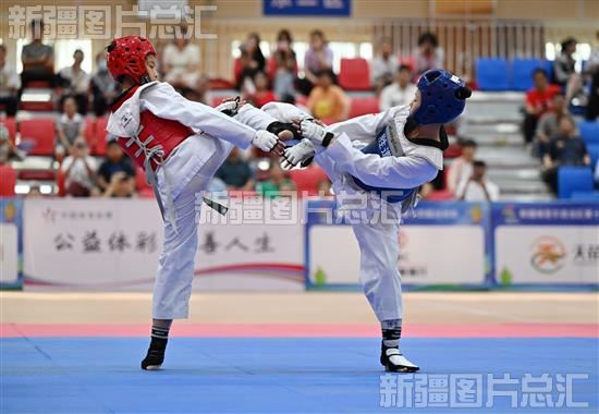 当日,自治区第十四届运动会比赛项目跆拳道比赛在库尔勒市开赛,来自全疆的14支代表队600余名运动员参加为期3天的比赛。