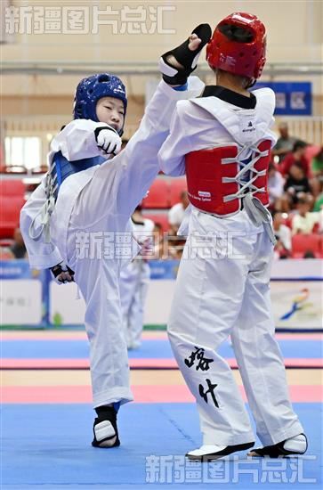 当日,自治区第十四届运动会比赛项目跆拳道比赛在库尔勒市开赛,来自全疆的14支代表队600余名运动员参加为期3天的比赛。