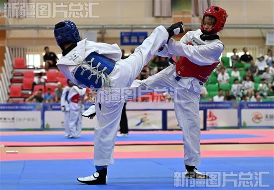 当日,自治区第十四届运动会比赛项目跆拳道比赛在库尔勒市开赛,来自全疆的14支代表队600余名运动员参加为期3天的比赛。