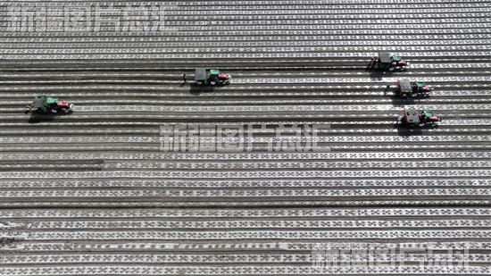 2023年4月20日,在焉耆回族自治县包尔海乡包尔海村田地,多台半自动、全自动辣椒移栽机进行移栽作业。