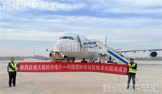 2023年11月19日,新疆喀什-德国科隆国际货运航线顺利首航飞机准备装运货物后启航。