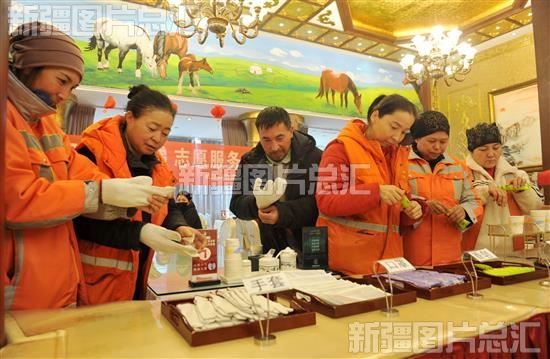“这个手套既舒服又保暖”。2023年11月17日,乌鲁木齐市沙依巴克区长江路街道冷库社区的环卫工人沙地克·沙塔尔在位于博尔塔拉大酒店的环卫驿站里试戴着新手套,开心不已。当日,冷库社区联合博尔塔拉大酒店举办“情暖冬日 爱心传递”志愿服务关爱活动,为辖区环卫工人提供”五个一”(一双手套、一只口罩、一块香皂、一支护手霜、一杯热茶)关爱服务。