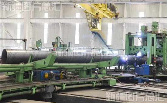 2023年11月3日,阿拉山口新博油气管道制造有限责任公司员工在生产线上作业。