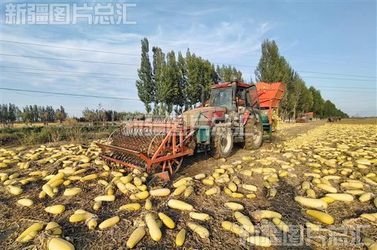 关键字:籽用西葫芦 丰收 沙湾市金沟河镇南五宫村 种植户 机械采收 收获 田间地头 农民