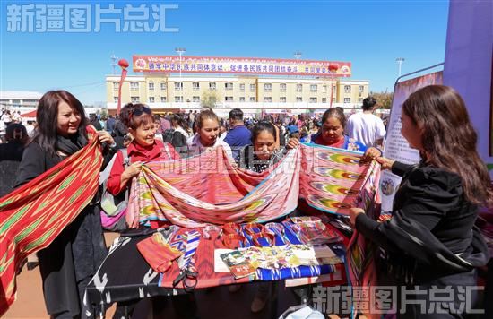 2023年9月23日,群众在活动现场挑选艾德莱斯丝绸。