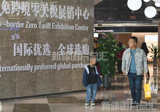 2023年11月4日,游客在喀什跨境电商展示交易中心选购商品。
