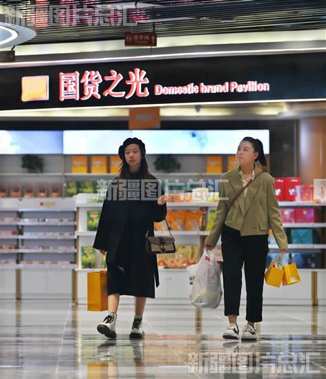 2023年11月4日,游客在喀什跨境电商展示交易中心选购商品。