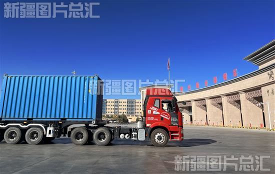 2023年11月4日,在喀什综合保税区通关的货运车辆。
