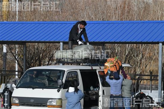 2023年11月6日,在红其拉甫口岸准备出境的车辆装货。