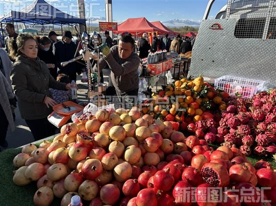 2023年11月4日,摊位经营者为村民榨石榴汁。