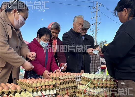 2023年11月4日,村民在乌苏市八十四户乡墩买里村“周三集市”上购买鸡蛋。