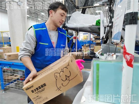 2023年11月3日,工作人员在阿里巴巴菜鸟集团中国智能骨干网(新疆)核心节点项目内的订单生产中心分拣包装快件。