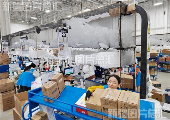 2023年11月3日,工作人员在阿里巴巴菜鸟集团中国智能骨干网(新疆)核心节点项目内的订单生产中心分拣包装快件。