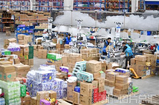 2023年11月3日,工作人员在阿里巴巴菜鸟集团中国智能骨干网(新疆)核心节点项目内的订单生产中心分拣包装快件。