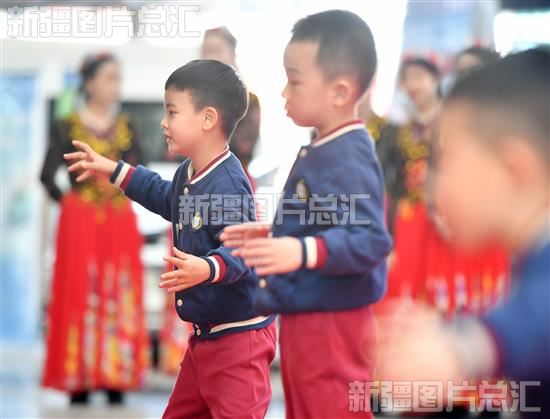 2023年11月21日,乌鲁木齐高新区(新市区)八家户街道东方社区辖区幼儿园小朋友在乌鲁木齐市赛博特汽车城展厅表演节目。