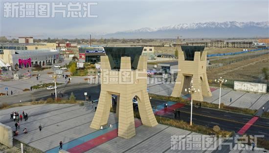 2023年11月8日,中哈霍尔果斯国际边境合作中心的鼎形国门,典雅大气。中哈霍尔果斯国际边境合作中心是我国与其他国家建立的首个跨境经济贸易合作区(无人机摄)。