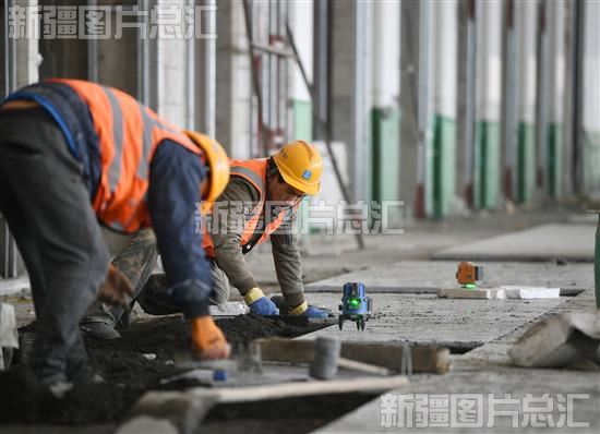 2023年11月7日,工作人员在乌鲁木齐国际机场改扩建工程航站楼指廊内施工。