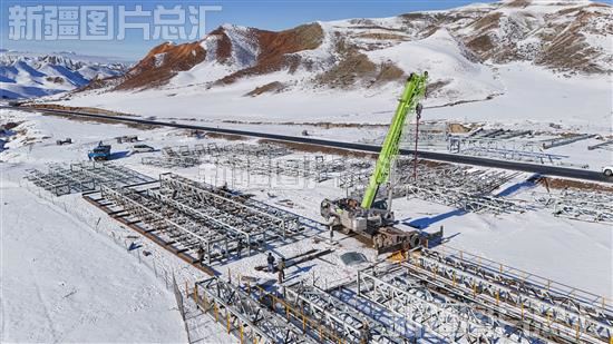 2023年11月21日,工人在呼图壁县输煤廊道建设项目(一期)东线输煤廊道施工现场作业。