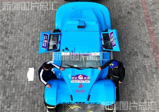 2023年11月9日,在伊犁地区霍城县体育馆,两名来自河南省的参赛选手正在整备参赛赛车。