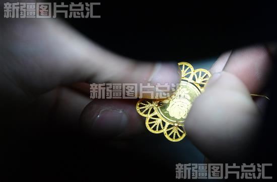 2023年11月20日,工作人员在新疆丝路玉海珠宝有限公司加工制作黄金首饰。