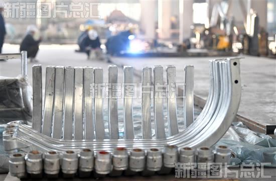 2023年11月8日,工作人员在新疆华通泰克游乐设备有限公司生产车间焊接零件。