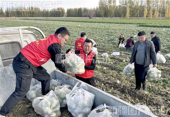 眼下,乌苏市夹河子乡夹河子村的萝卜、白菜迎来丰收季。乌苏市委组织部联合5个非公企业党支部组成党员志愿服务队深入田间地头开展“爱心助农”活动,帮助农户采收萝卜、白菜,助农增收。