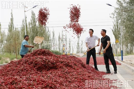 2023年9月2日,洛浦县杭桂镇和佳新村村民正在晾晒朝天椒。