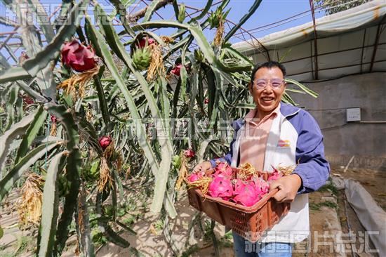 2023年9月15日,洛浦县布亚乡依格孜博斯坦村的大棚内,种植户采摘火龙果。