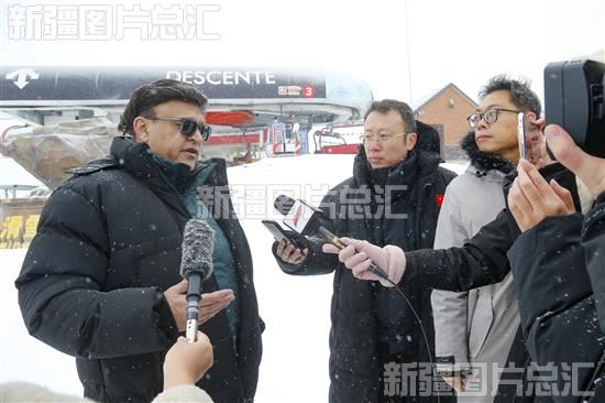2023年11月25日,在阿勒泰将军山国际滑雪度假区,巴基斯坦内阁副部长哈马德·沙米米接受记者采访。