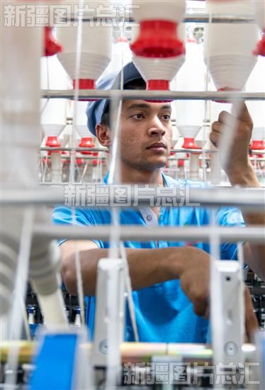 关键字:尉犁县 纺织企业 尉犁利华纺织有限公司纺纱车间 纺织工人 工业 生产企业 生产车间