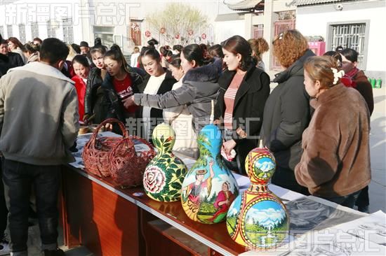 2023年11月24日,库车市牙哈镇群众在观看刺绣、农民画展示。