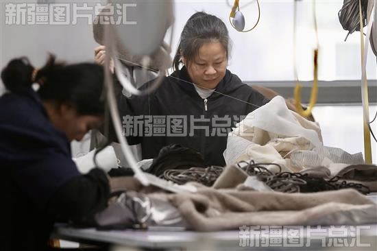 2023年11月24日,工人在生产线上加工貂皮大衣。