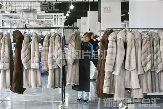 2023年11月24日,工作人员正在生产线上加工貂皮大衣。