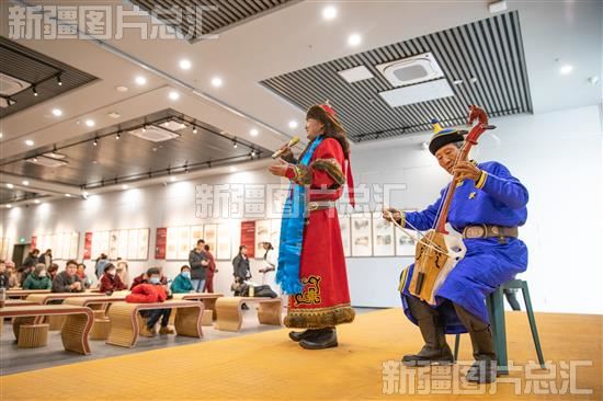 2023年11月27日,非物质文化遗产传承人在位于吉木萨尔县北庭镇的丝绸之路北庭故城遗址博物馆表演蒙古长调。