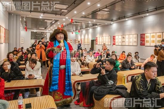 2023年11月27日,非物质文化遗产传承人在位于吉木萨尔县北庭镇的丝绸之路北庭故城遗址博物馆表演蒙古长调。