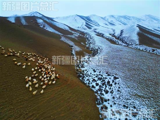 努尔加水库碧波荡漾,沟壑纵横的悬崖峭壁掩映湖中,从高空俯瞰高山之巅,羊群漫步,宛若游云,将冬日的大峡谷装扮成一幅水墨丹青美景。