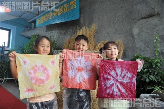 2023年11月28日,小朋友在展示自己印染的作品。