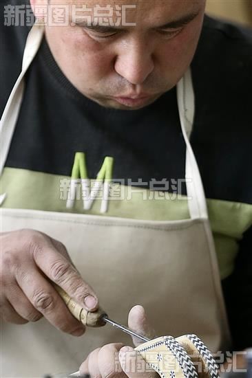 2023年11月27日,村民在托万克吾库萨克村民族乐器作坊制作民族乐器。