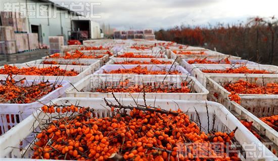 近日,位于布尔津县的松源林果生物科技有限公司万亩沙棘迎来采摘季,工人正加紧采摘、脱粒装袋。随着种植面积不断扩大,沙棘种植加工已成为布尔津县特色产业,目前全县沙棘种植面积达10万余亩。