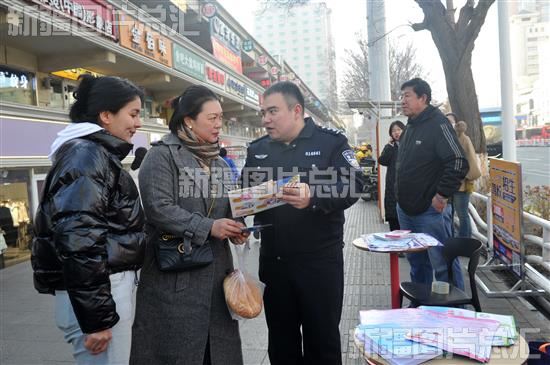 2023年11月30日,乌鲁木齐市公安局沙依巴克区分局碾子沟派出所民警为居民讲解艾滋病预防知识。