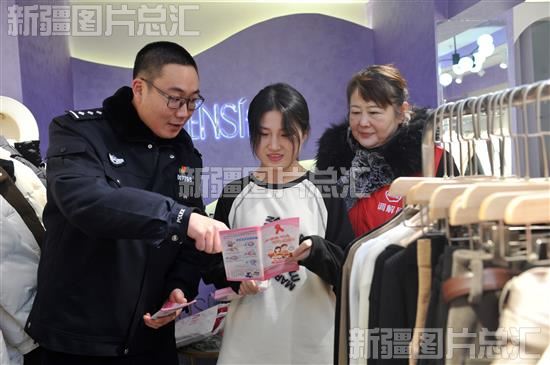 2023年11月30日,乌鲁木齐市公安局沙依巴克区分局碾子沟派出所民警为辖区商户发放艾滋病防治宣传册。